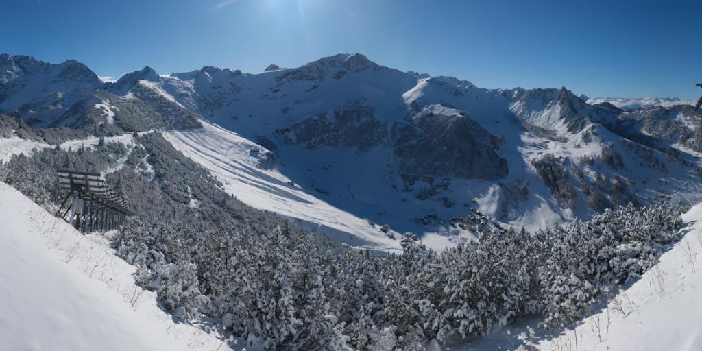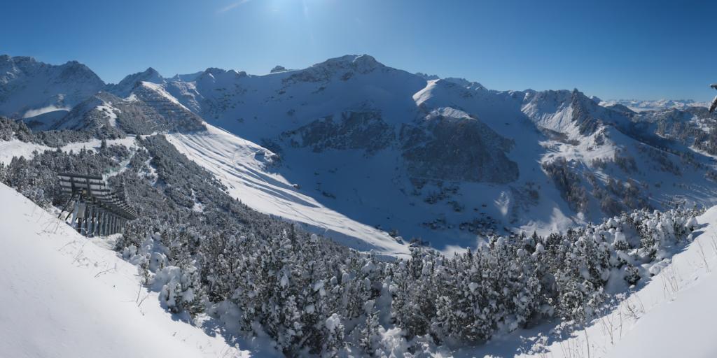 Malbun, Liechtenstein - 9.7 km von Sevelen: 240°-Panorama Sareis - Malbun Bergbahn