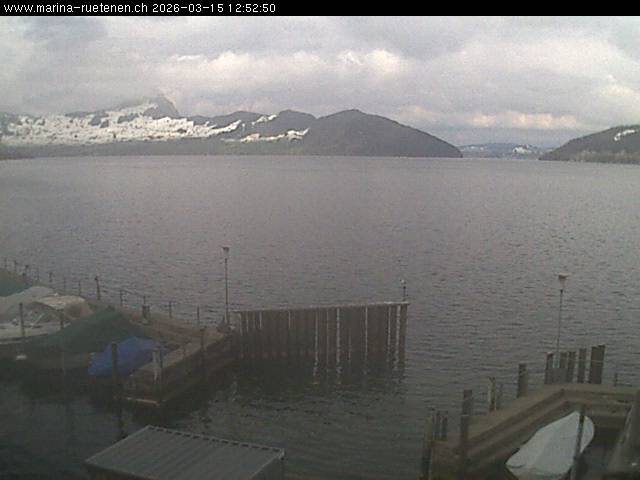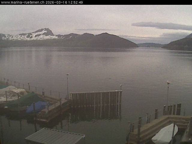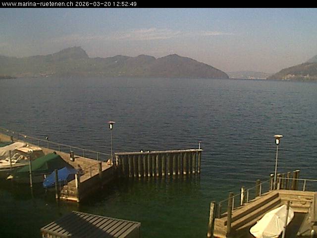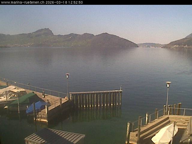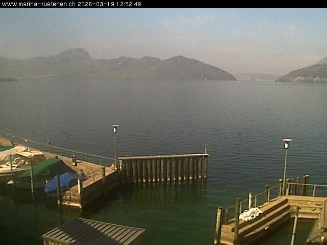 - Webcam Bootshafen Rütenen an Ostende der Gemeinde Beckenried mit Blick gegen Brunnen und die beiden Mythen.