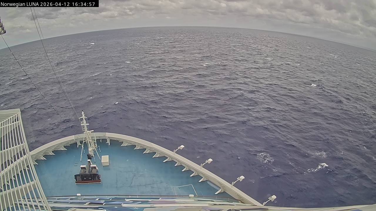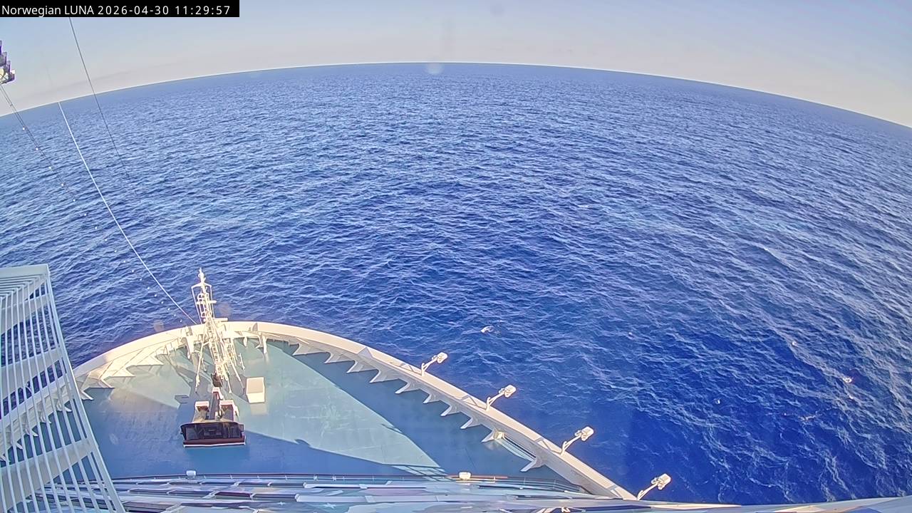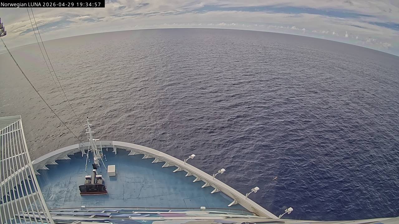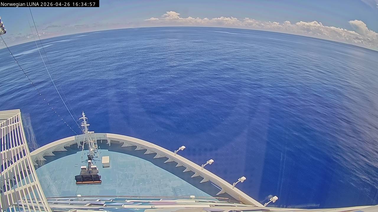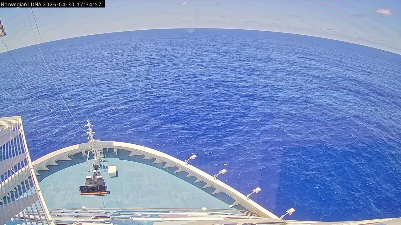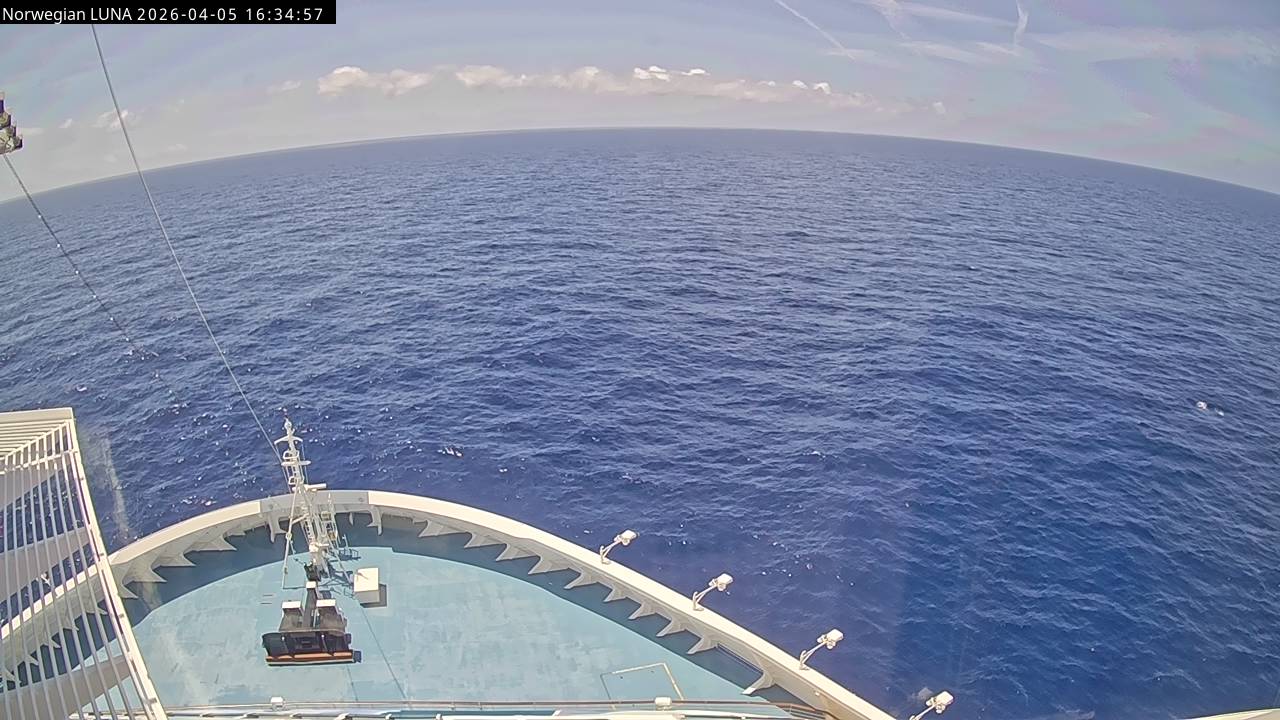 Norwegian Luna, Norwegian Cruise Line - 291 km von Abraham's Bay: Live auf See - Werfen Sie einen Blick von der Brücke des Kreuzfahrtschiffes Norwegian Luna auf die See.