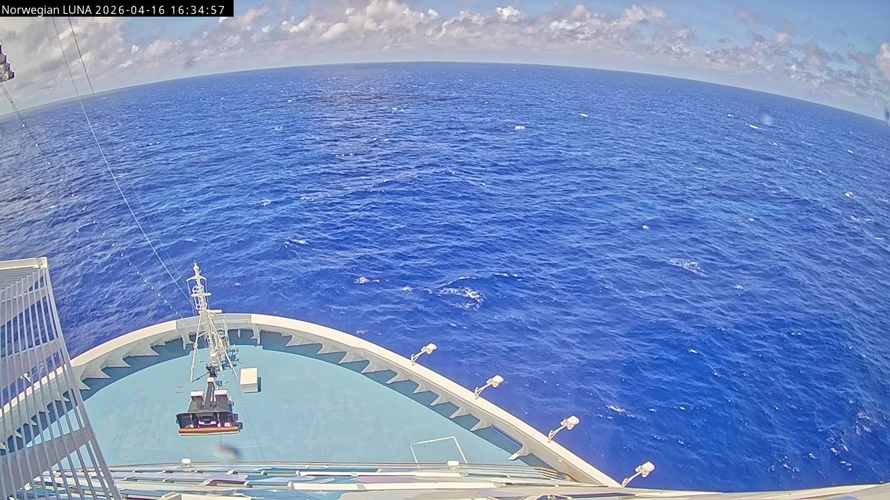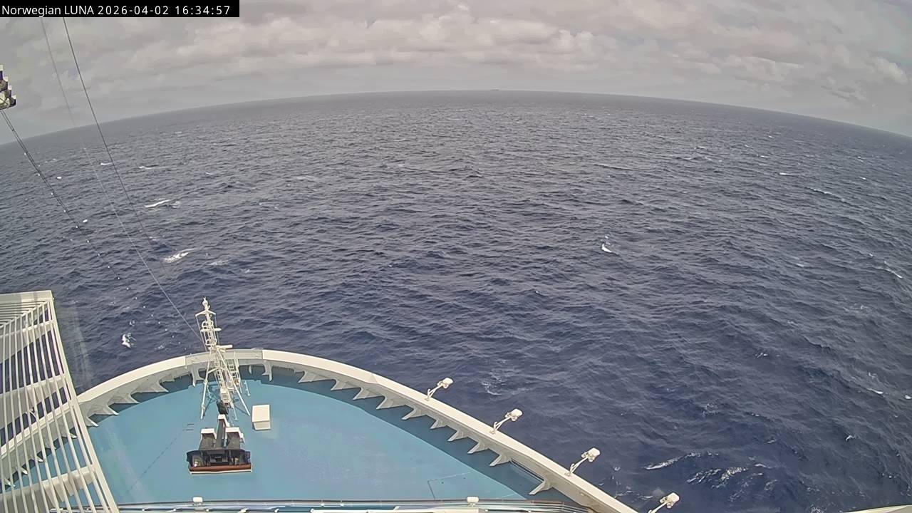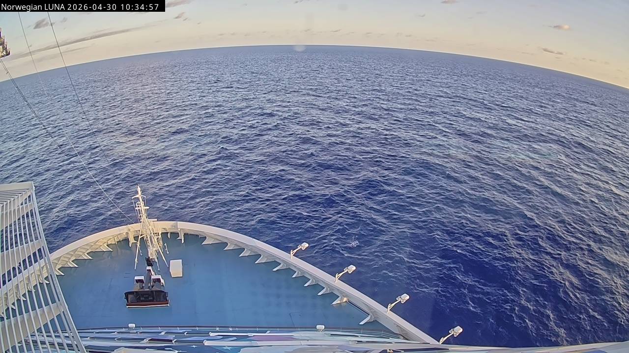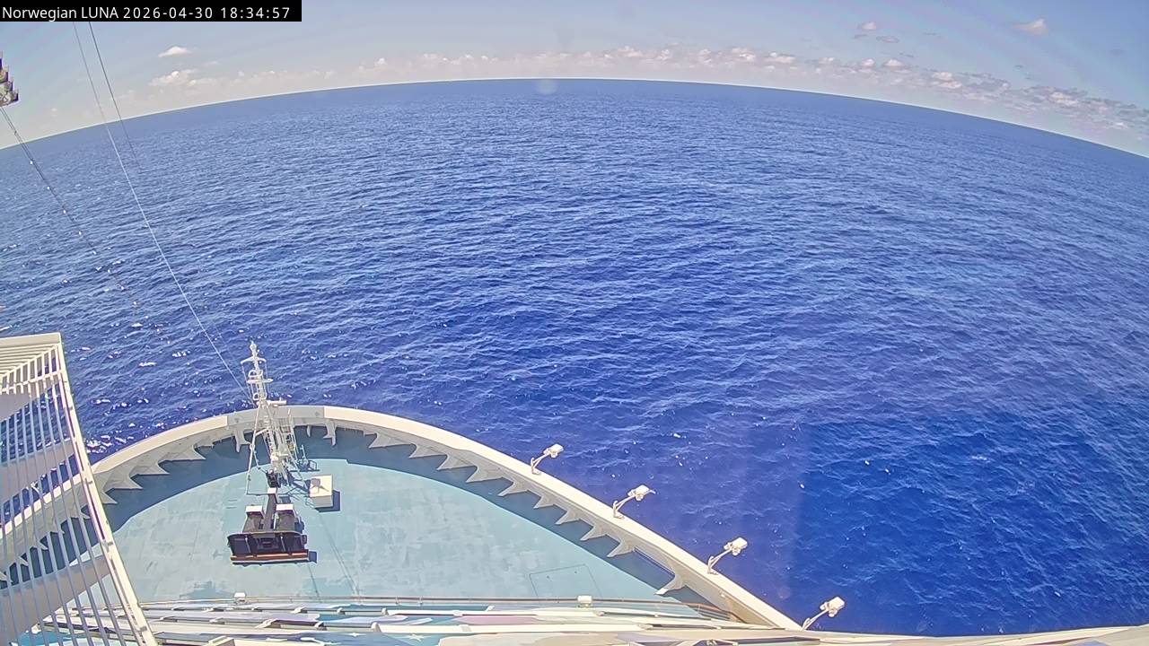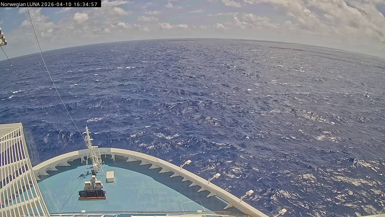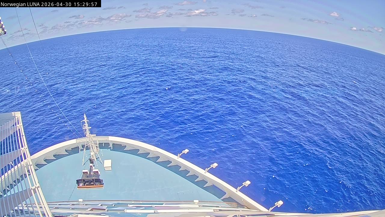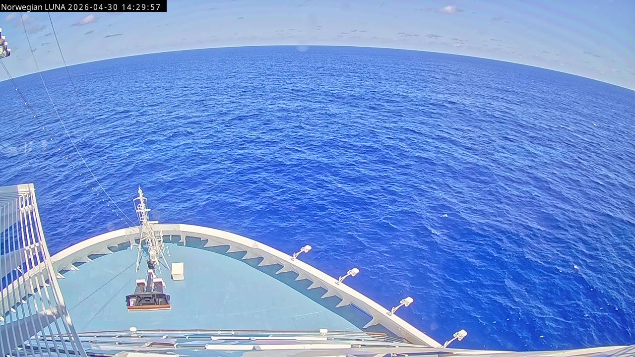 Norwegian Luna, Norwegian Cruise Line - 291 km von Abraham's Bay: Live auf See - Werfen Sie einen Blick von der Brücke des Kreuzfahrtschiffes Norwegian Luna auf die See.