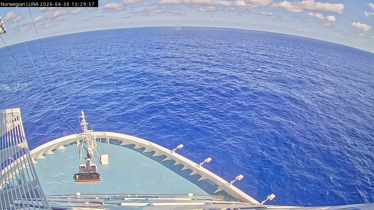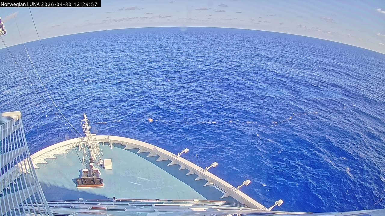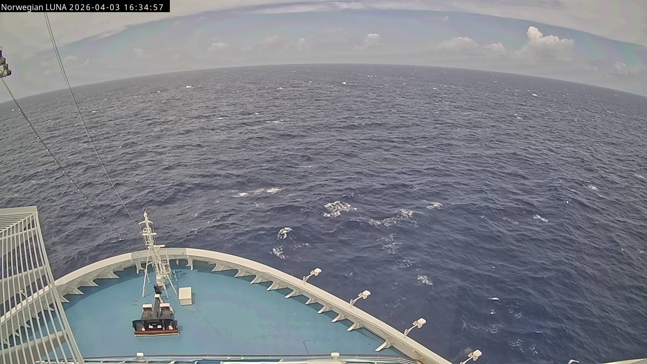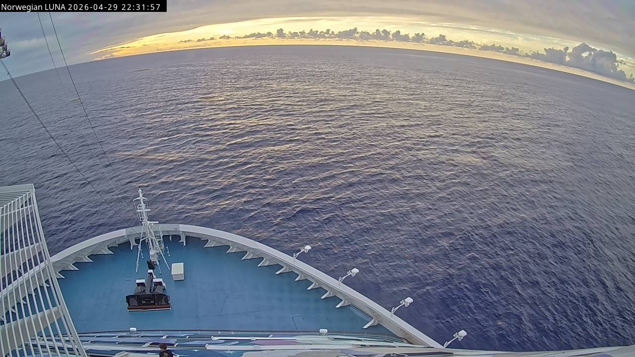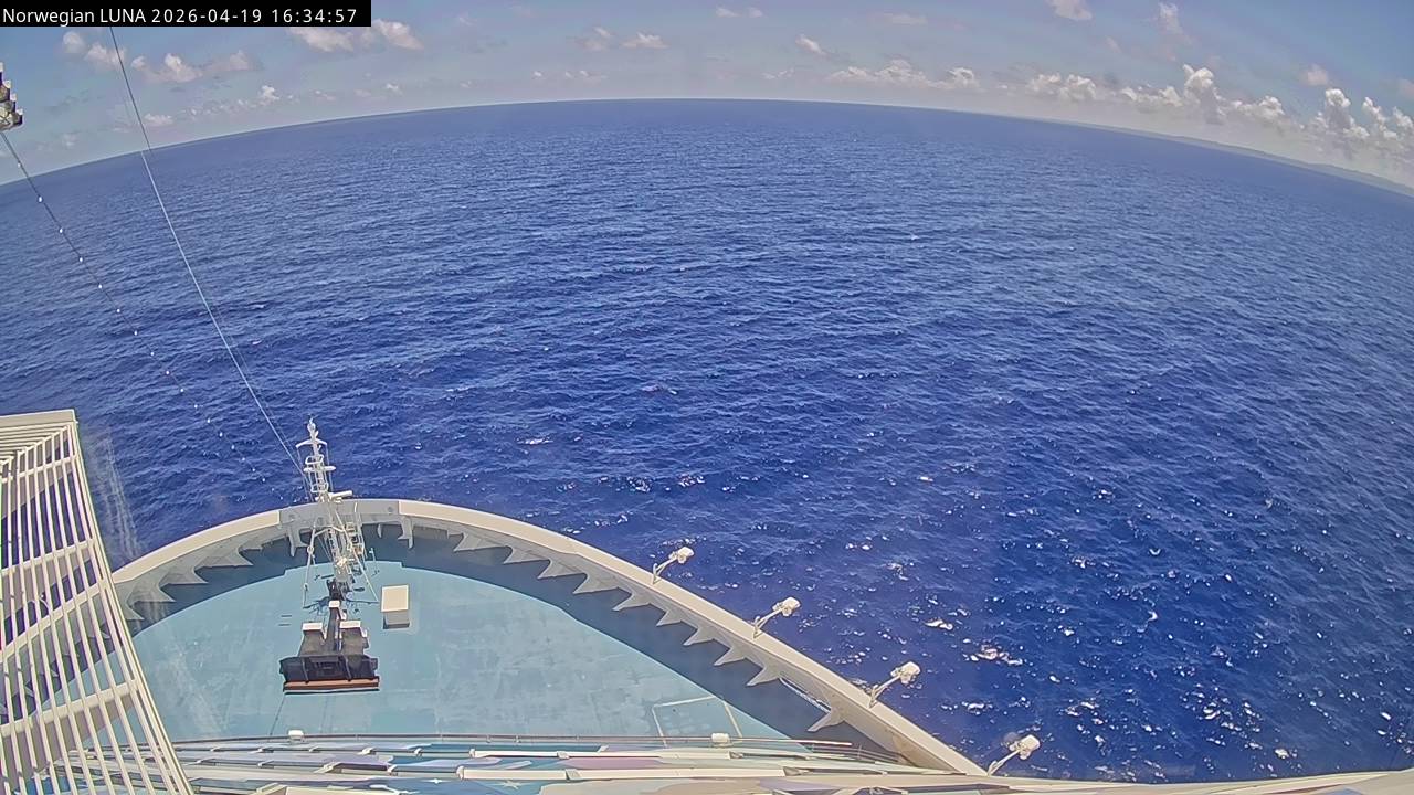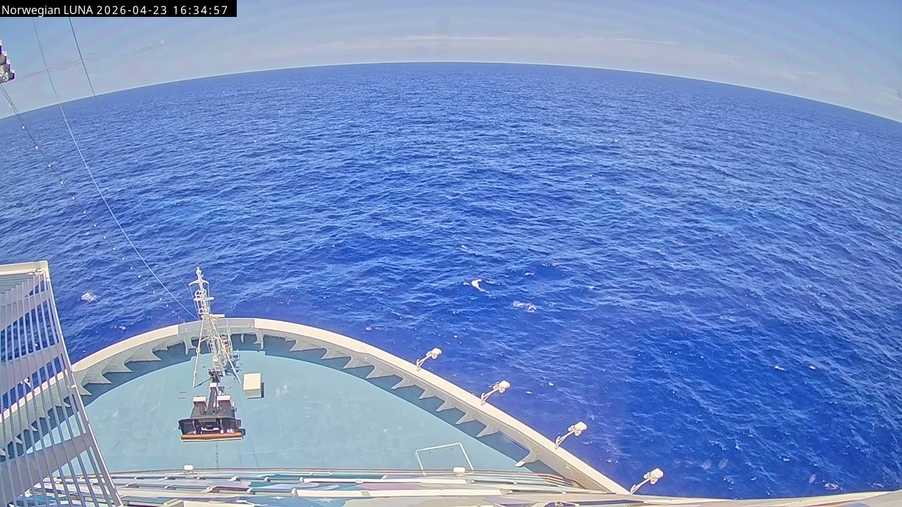 Norwegian Luna, Norwegian Cruise Line - 291 km von Abraham's Bay: Live auf See - Werfen Sie einen Blick von der Brücke des Kreuzfahrtschiffes Norwegian Luna auf die See.