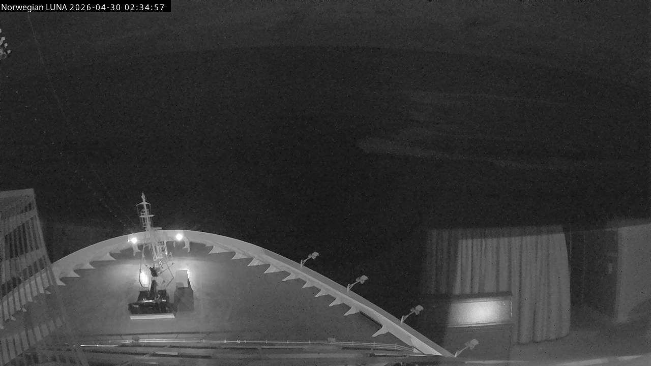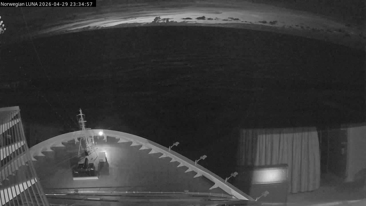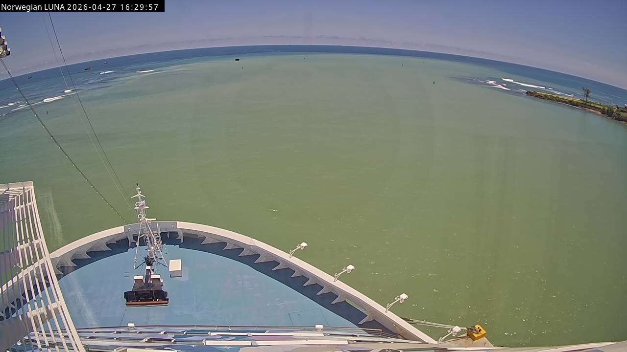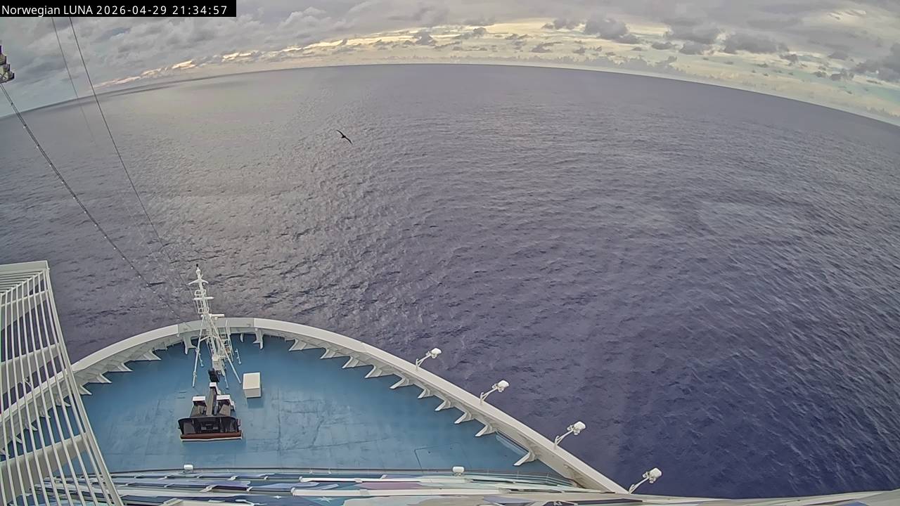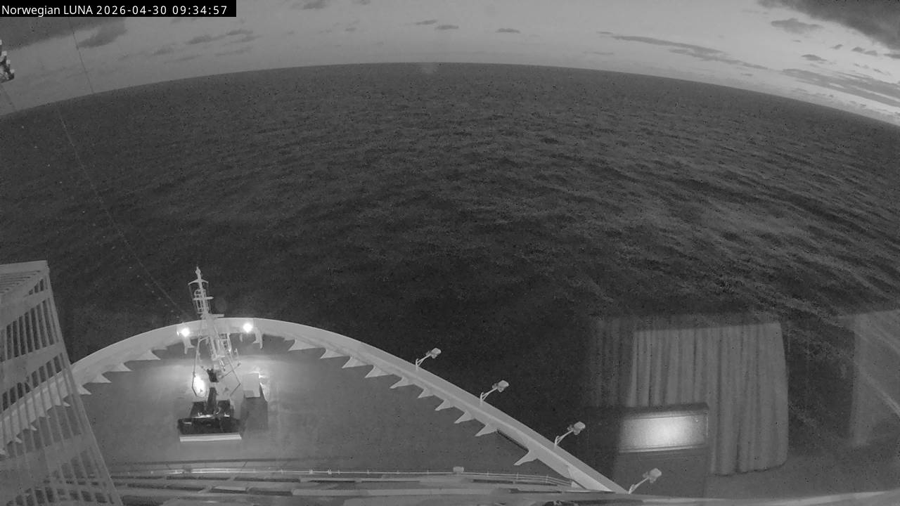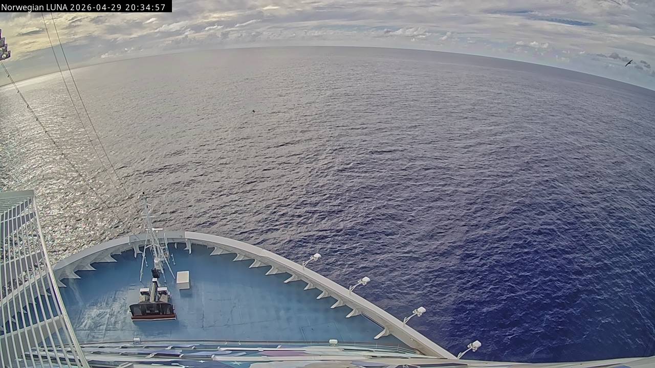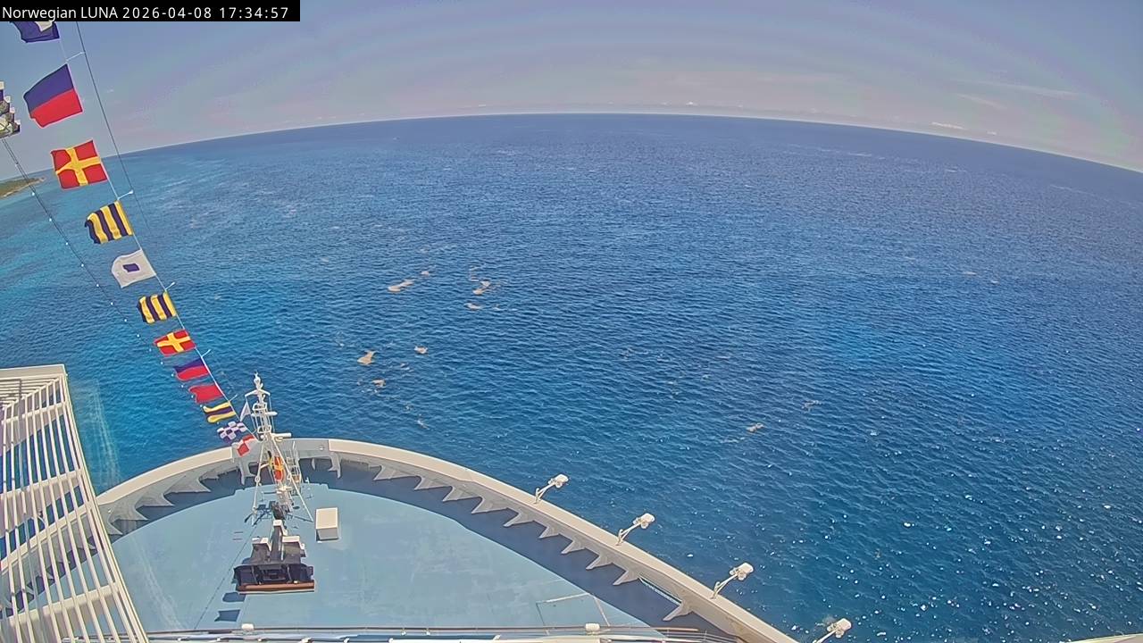 Norwegian Luna, Norwegian Cruise Line - 291 km von Abraham's Bay: Live auf See - Werfen Sie einen Blick von der Brücke des Kreuzfahrtschiffes Norwegian Luna auf die See.