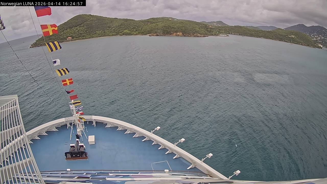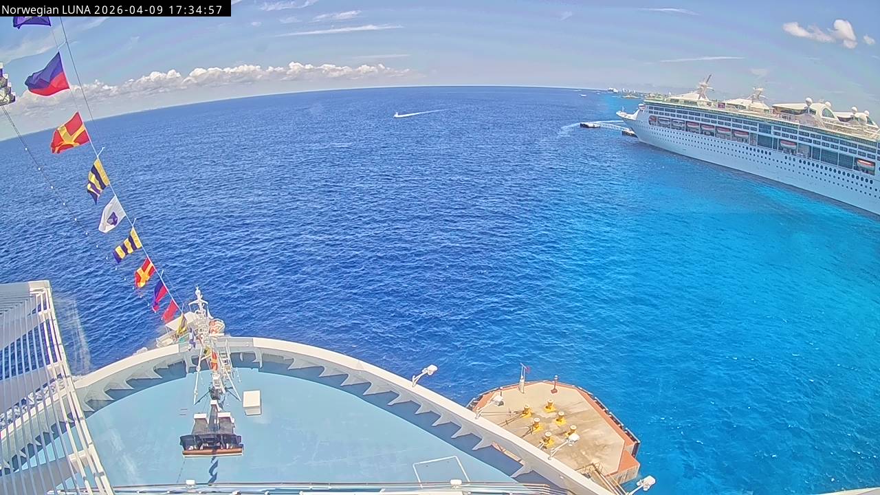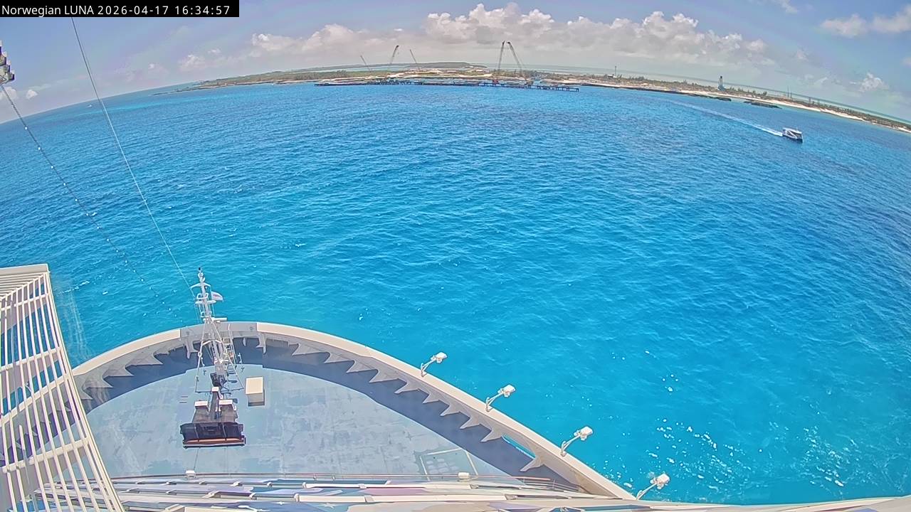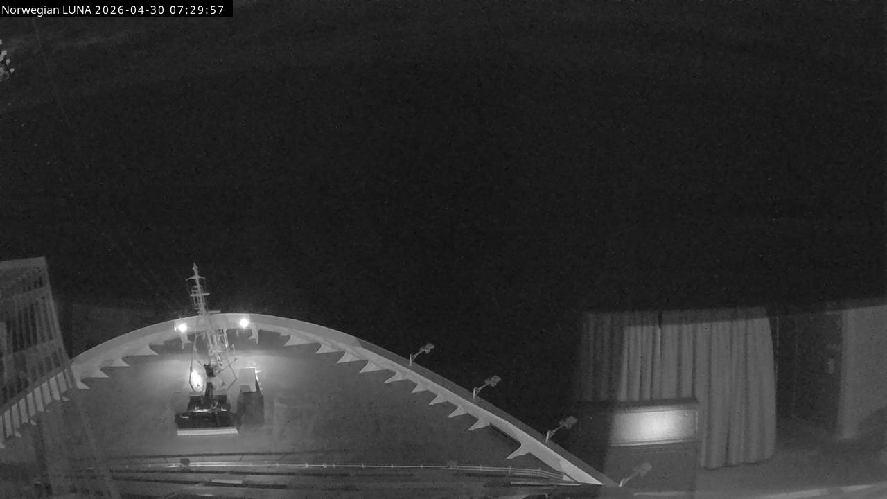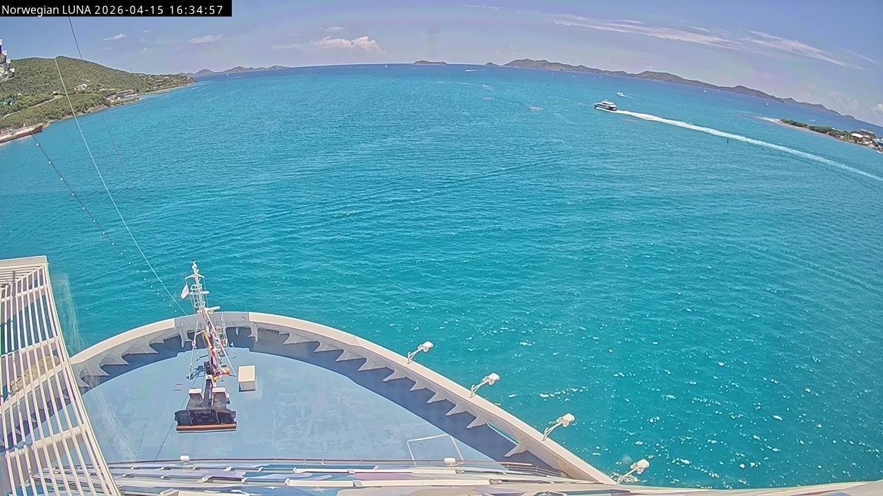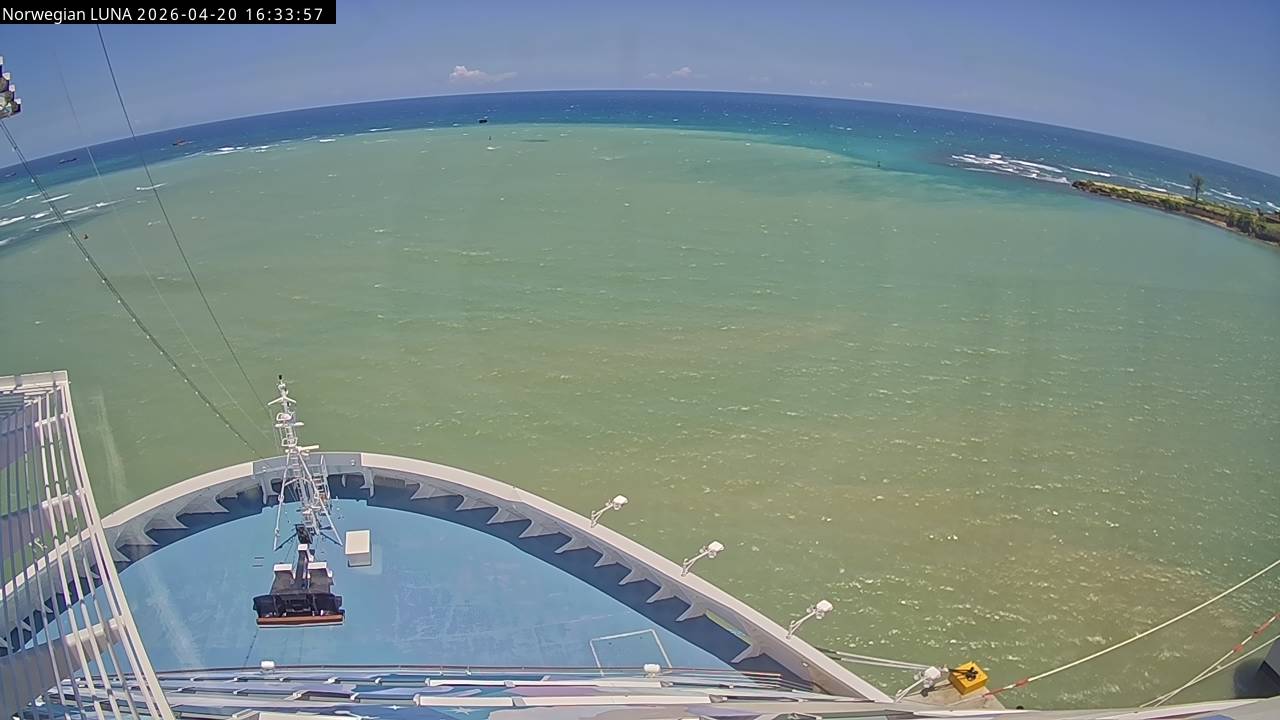 Norwegian Luna, Norwegian Cruise Line - 291 km von Abraham's Bay: Live auf See - Werfen Sie einen Blick von der Brücke des Kreuzfahrtschiffes Norwegian Luna auf die See.
