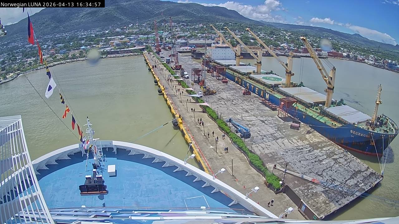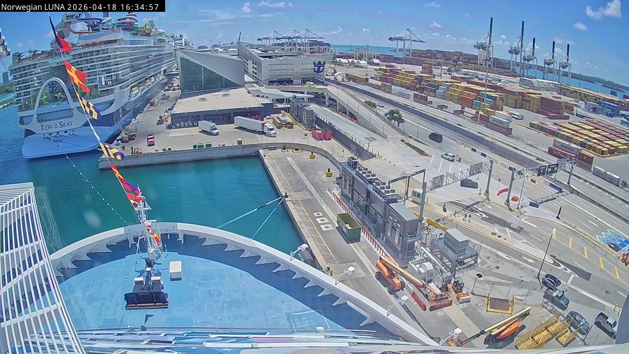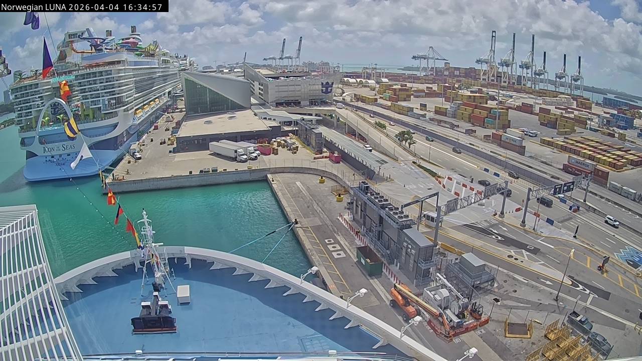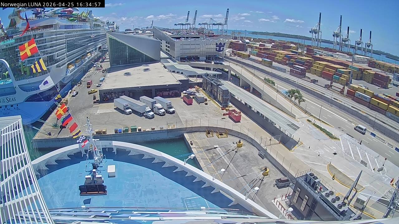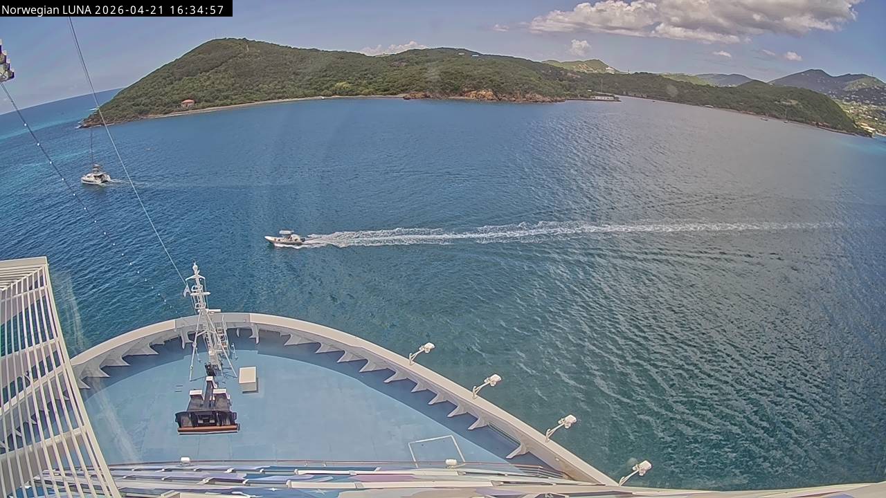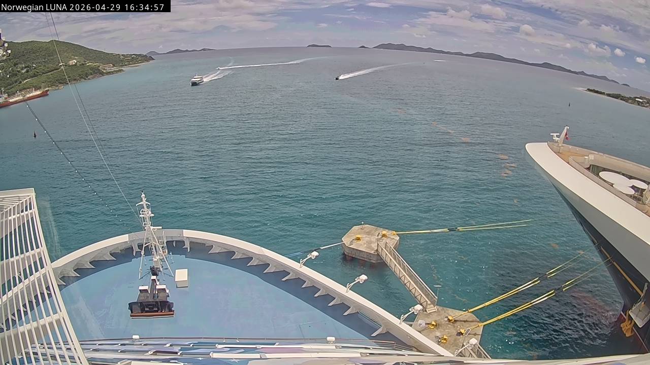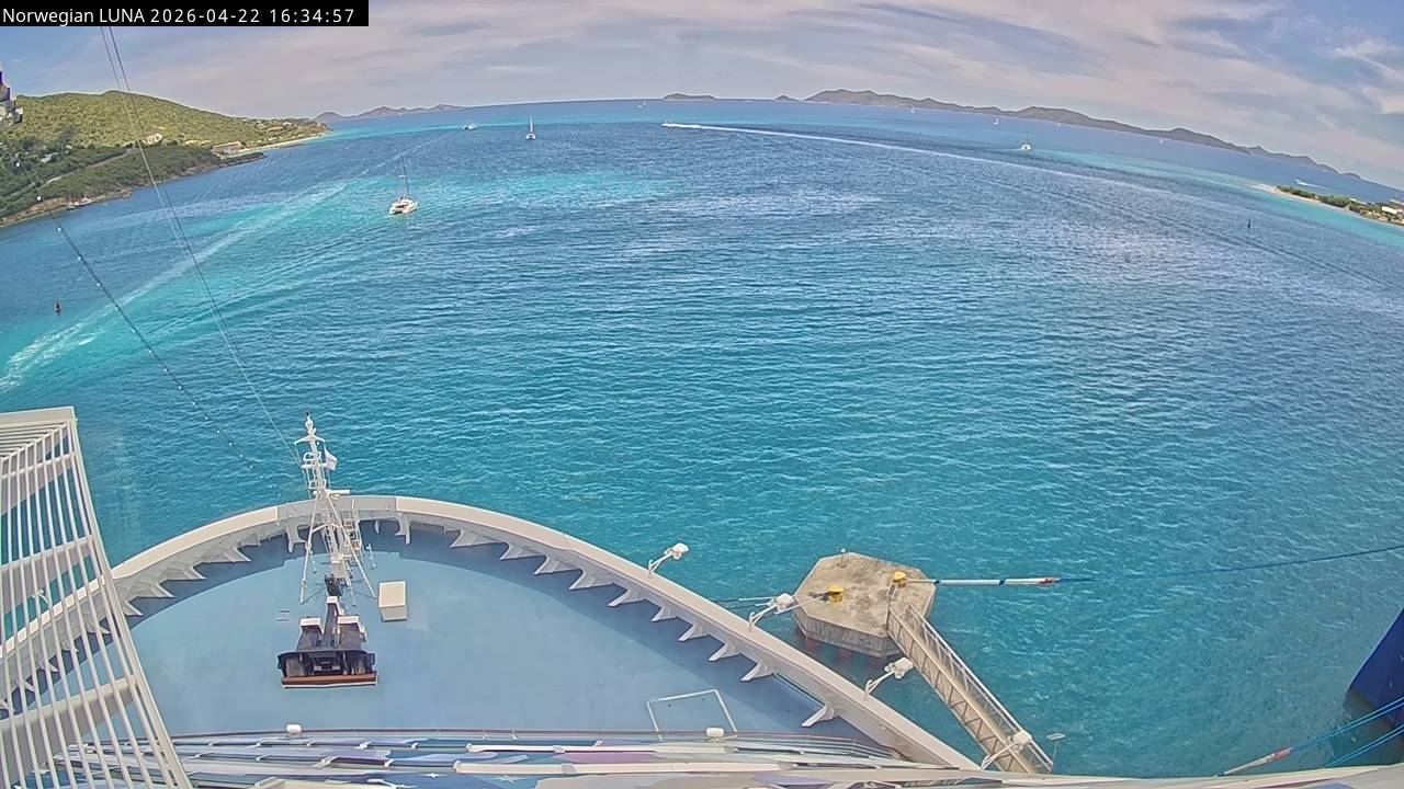 Norwegian Luna, Norwegian Cruise Line - 291 km von Abraham's Bay: Live auf See - Werfen Sie einen Blick von der Brücke des Kreuzfahrtschiffes Norwegian Luna auf die See.