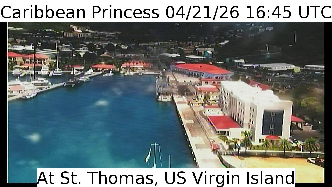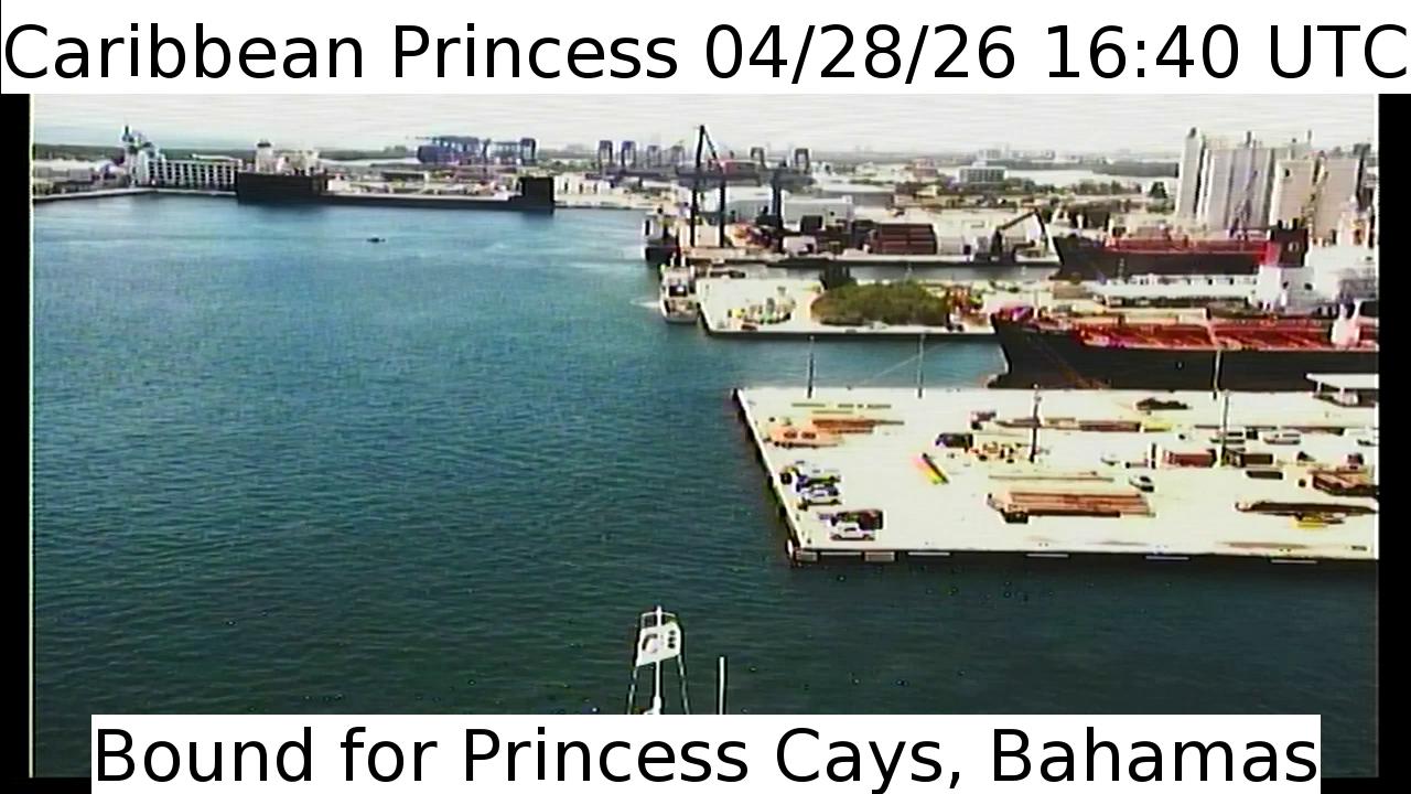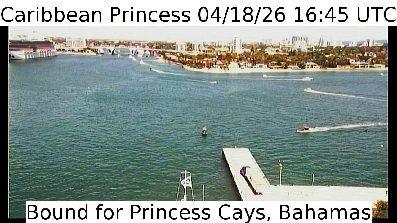 Caribbean Princess, Princess Cruises - 196.8 km von Abraham's Bay: Live von der Brücke - Ein Blick von der Brücke des Kreuzfahrtschiffs Caribbean Princess.