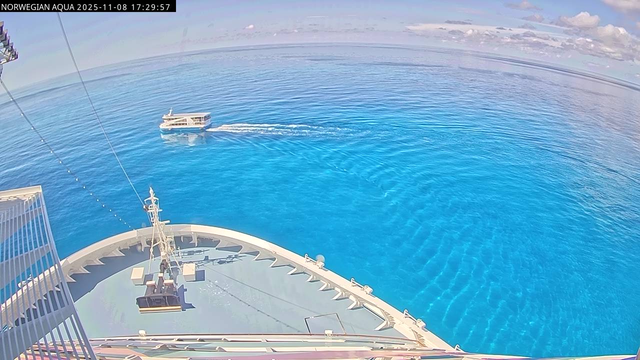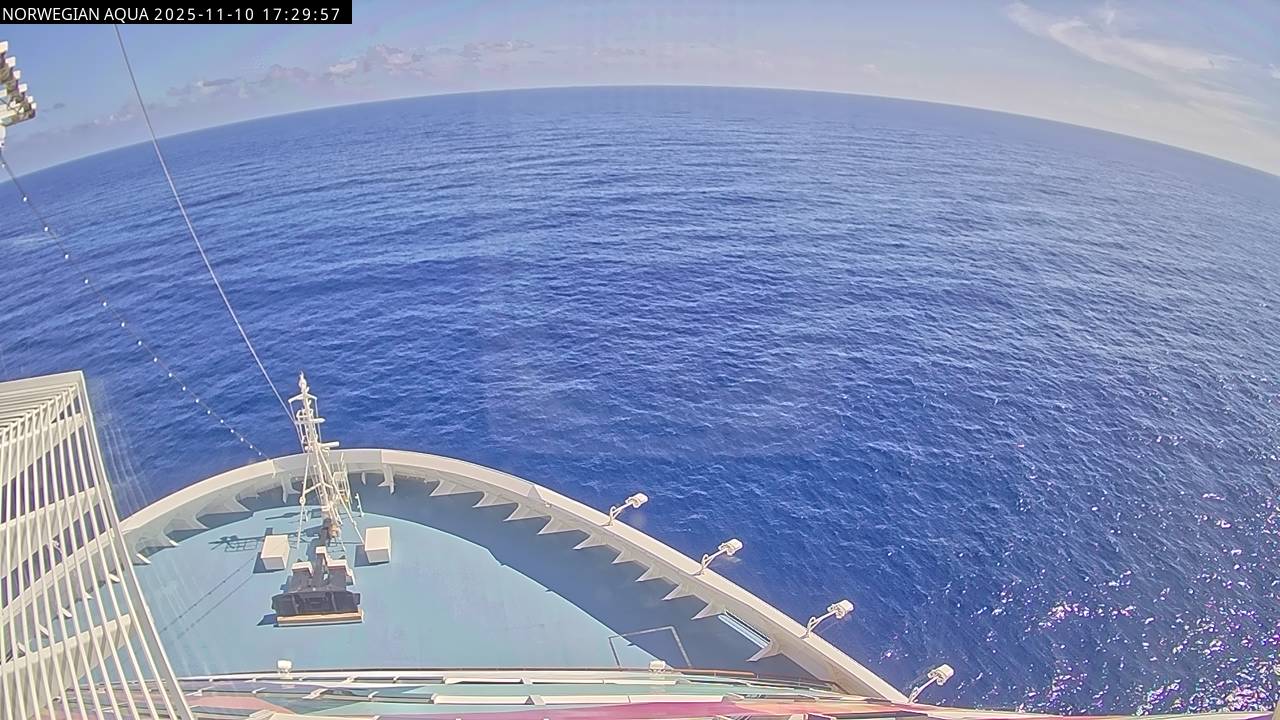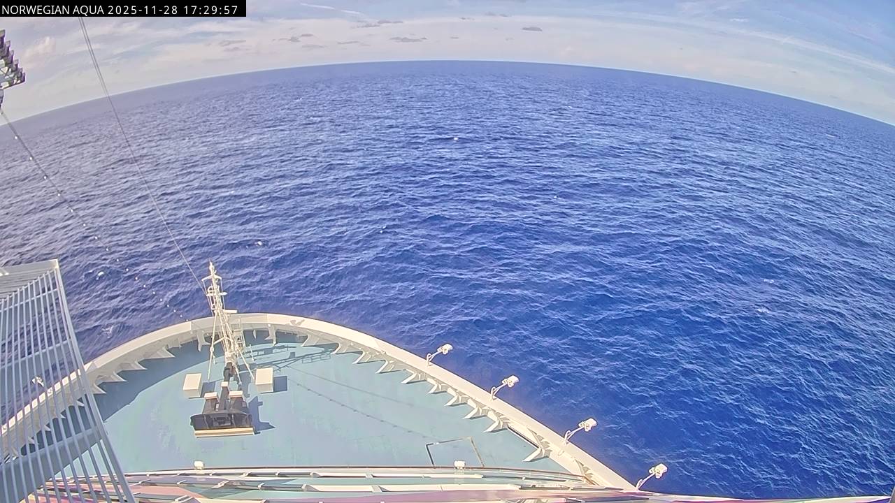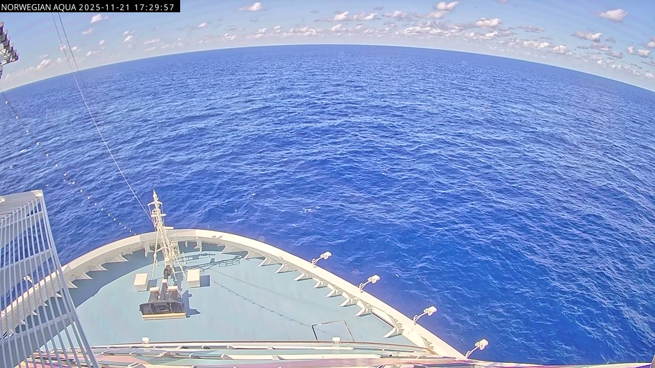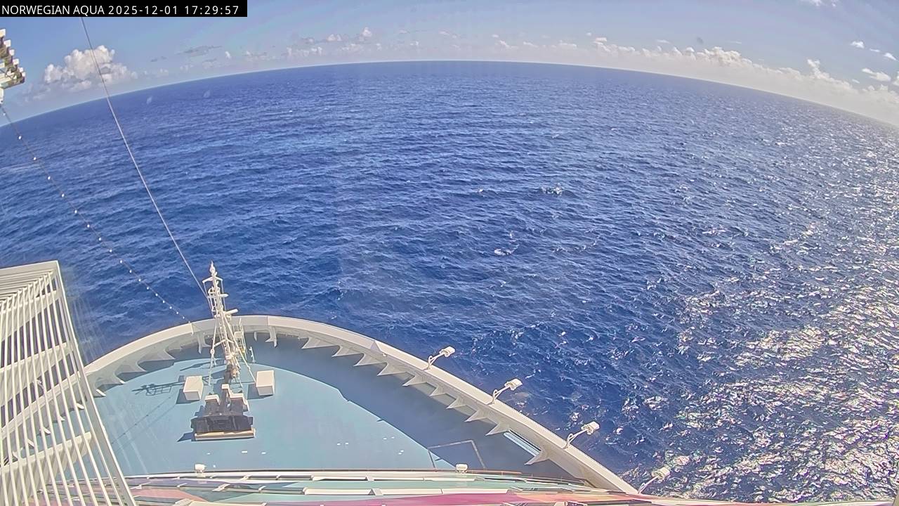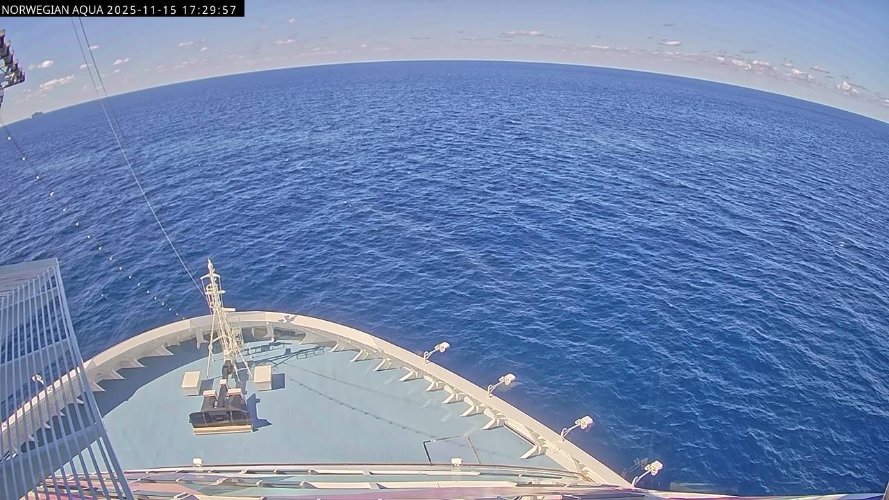 Norwegian Aqua, Norwegian Cruise Line - 397.6 km von Abraham's Bay: Blick über den Bug - Werfen Sie einen Blick von der Brücke des Kreuzfahrtschiffes Norwegian Aqua auf die See.