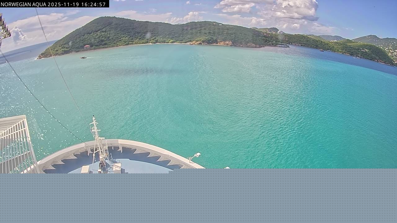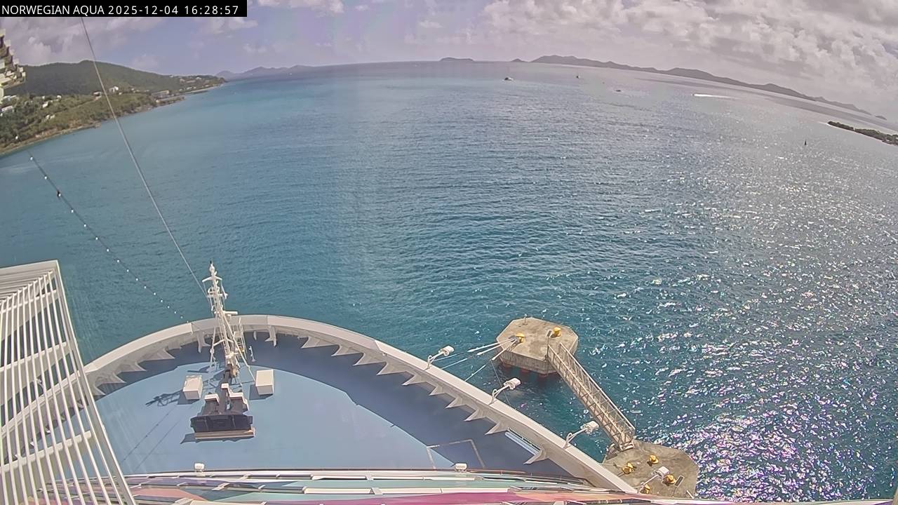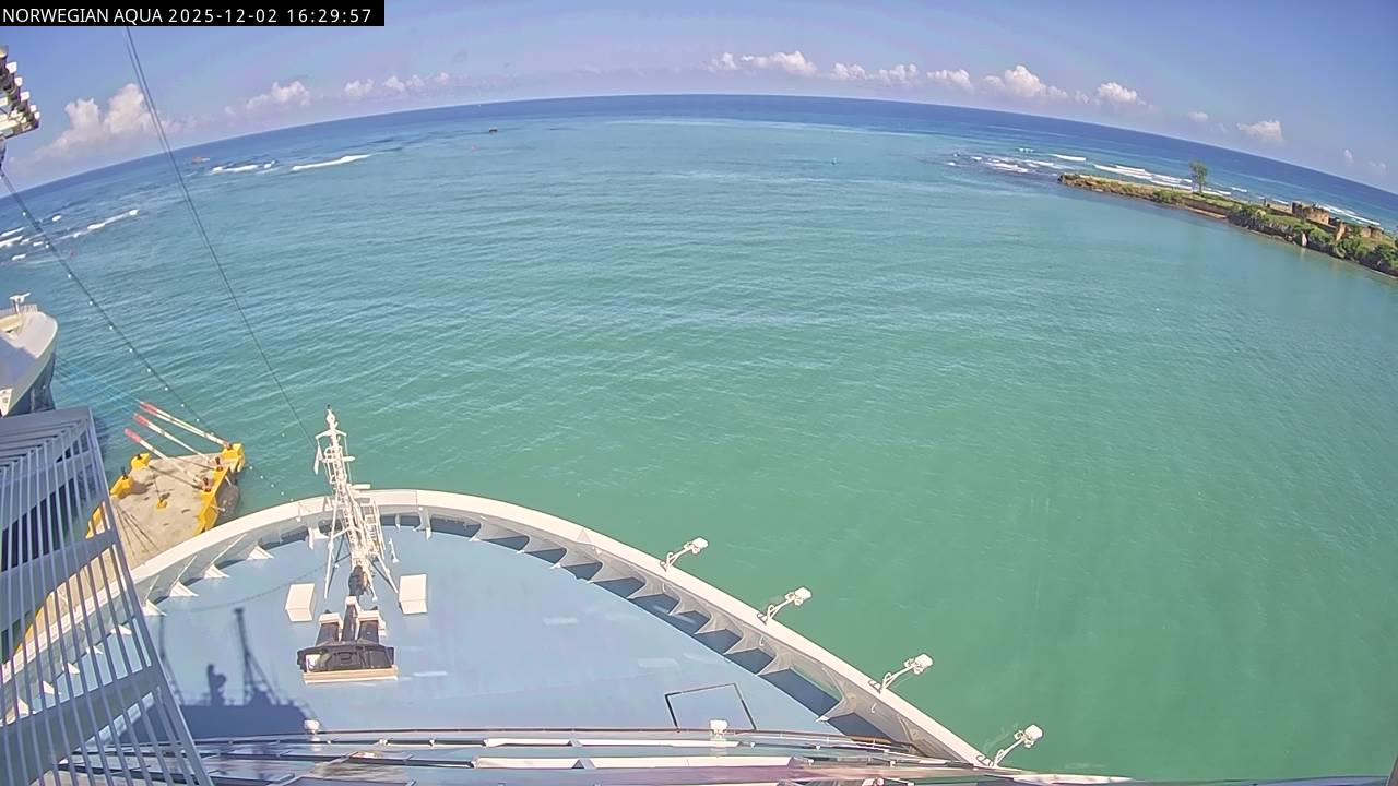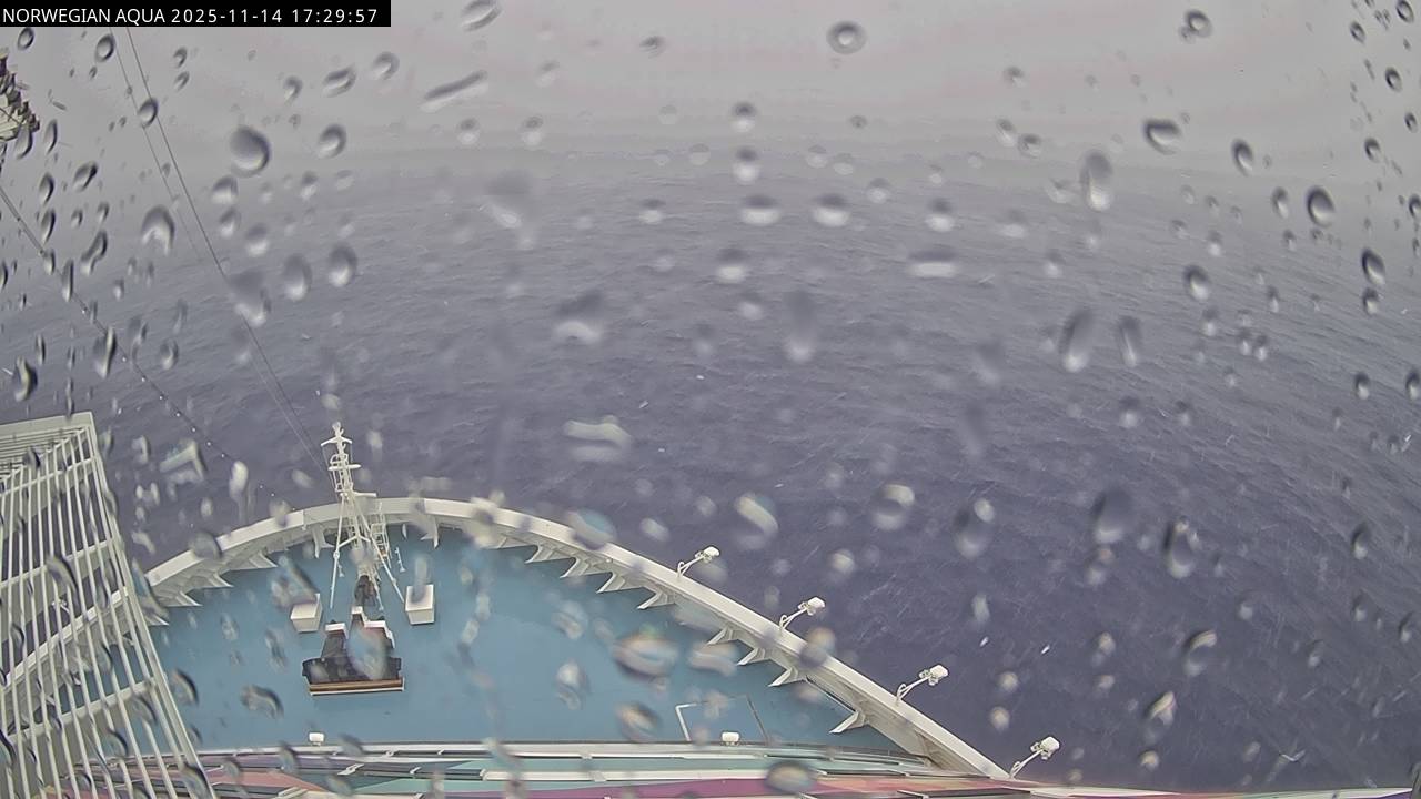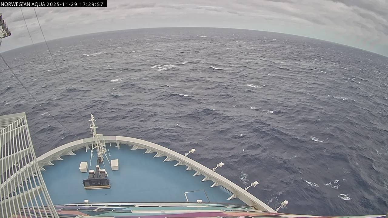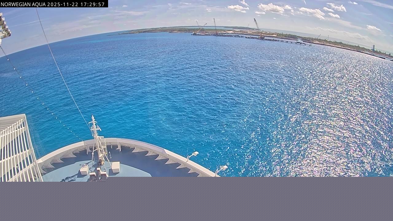 Norwegian Aqua, Norwegian Cruise Line - 397.6 km von Abraham's Bay: Blick über den Bug - Werfen Sie einen Blick von der Brücke des Kreuzfahrtschiffes Norwegian Aqua auf die See.