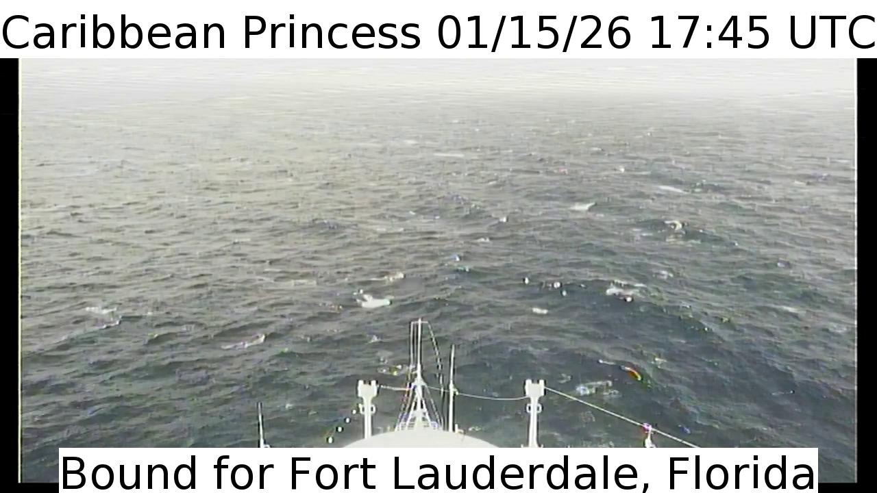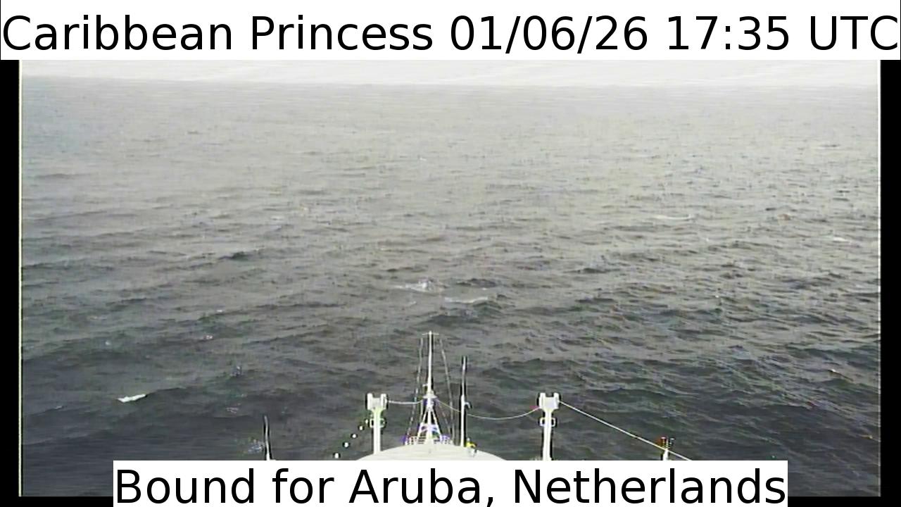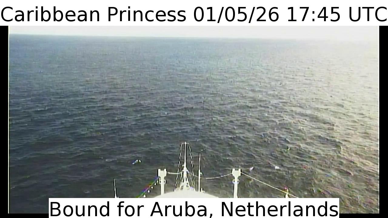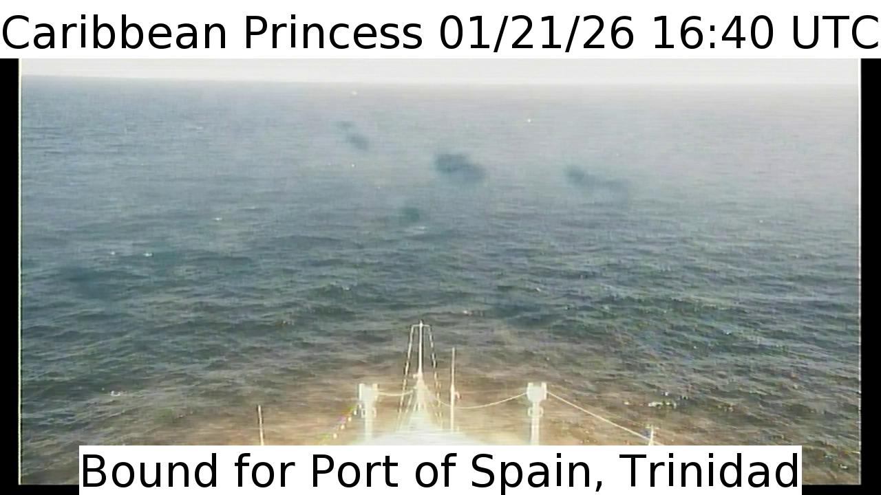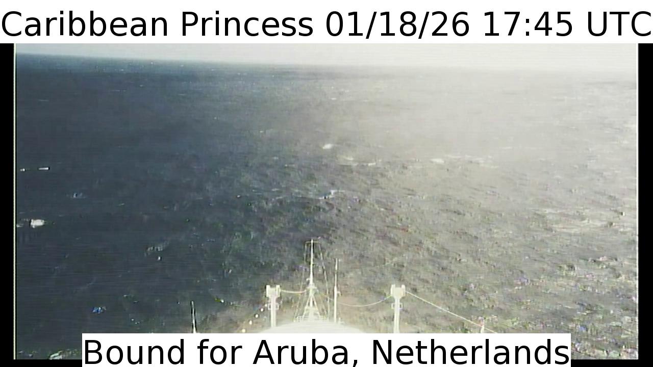 Caribbean Princess, Princess Cruises - 159 km von Hard Bargain: Live von der Brücke - Ein Blick von der Brücke des Kreuzfahrtschiffs Caribbean Princess.