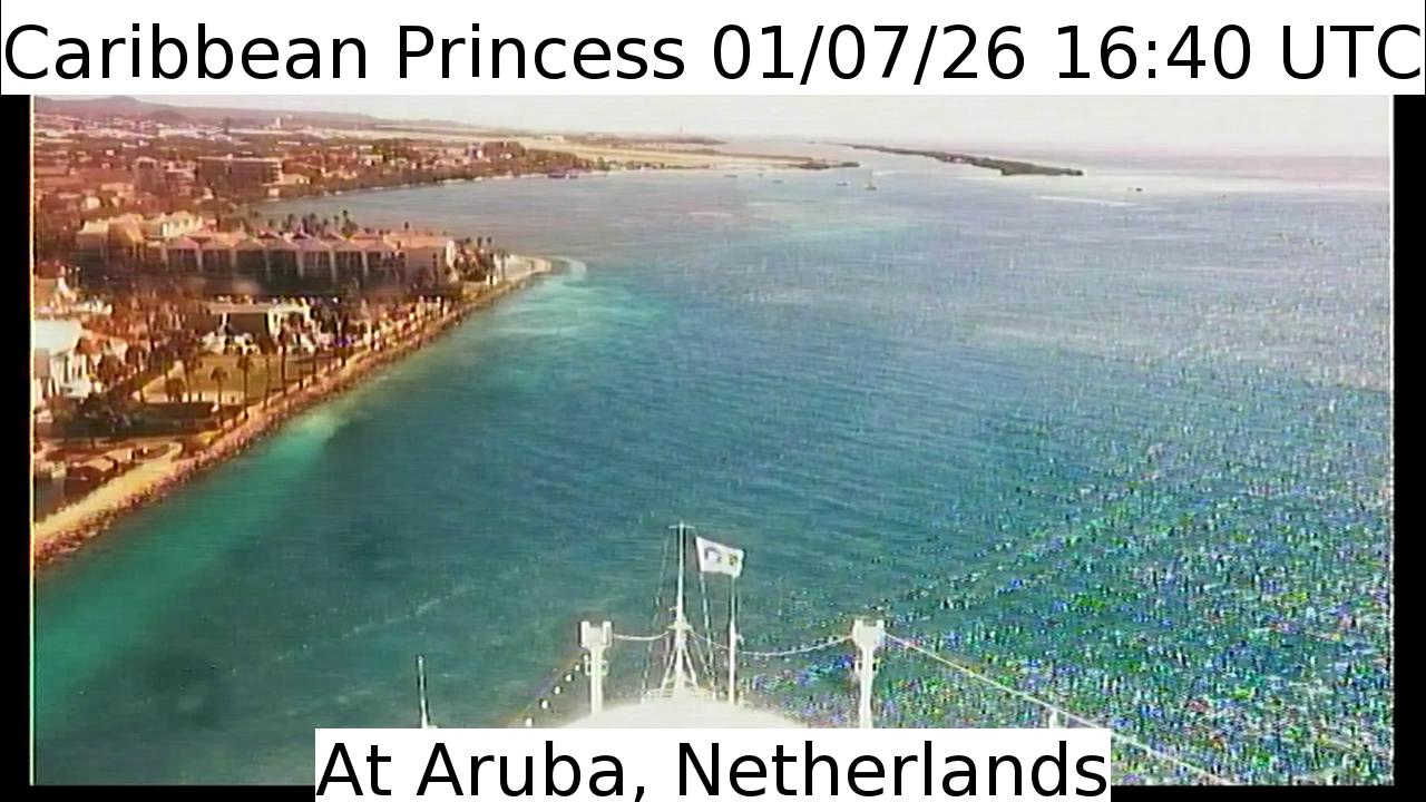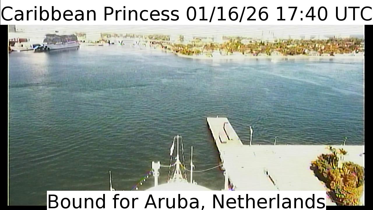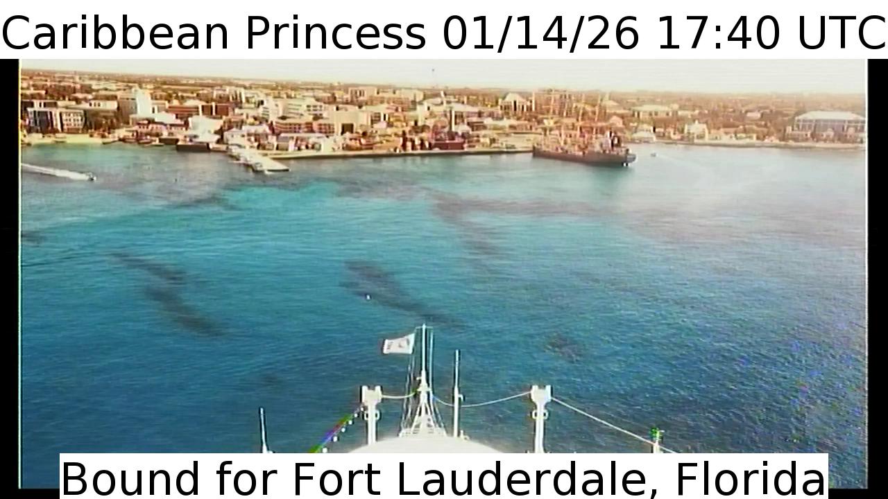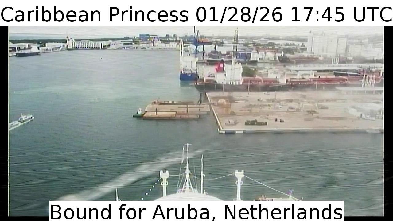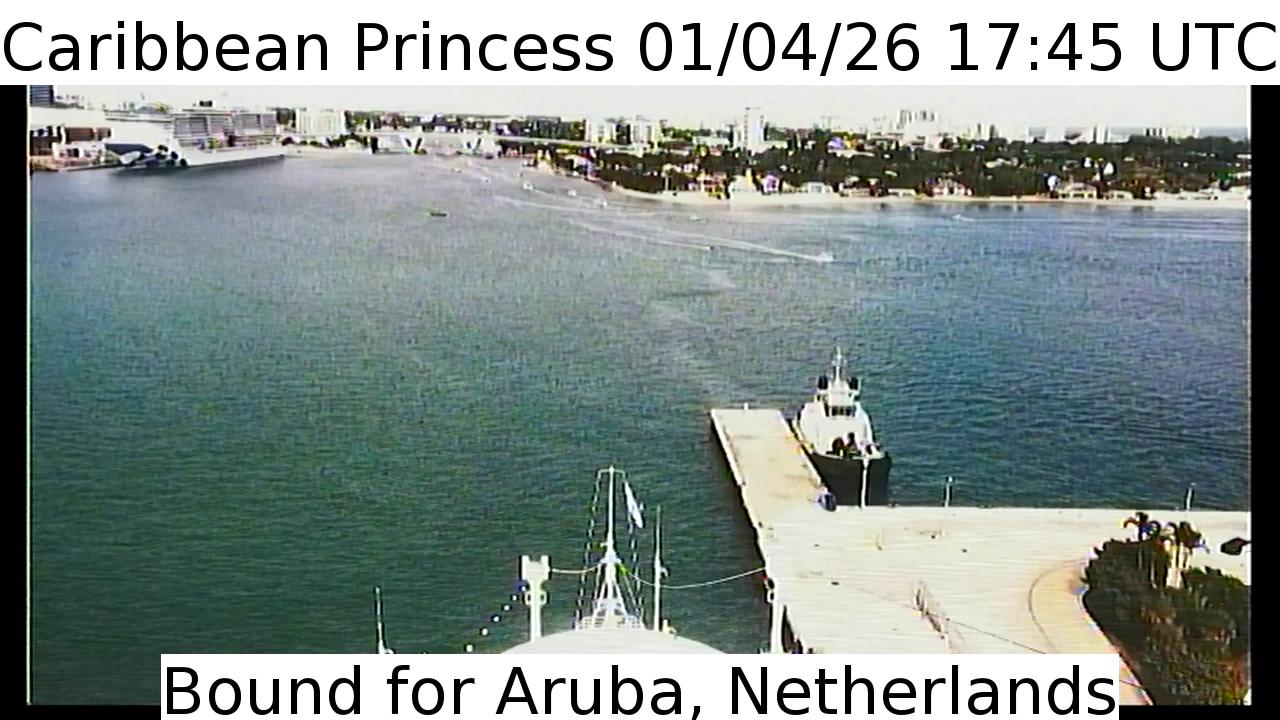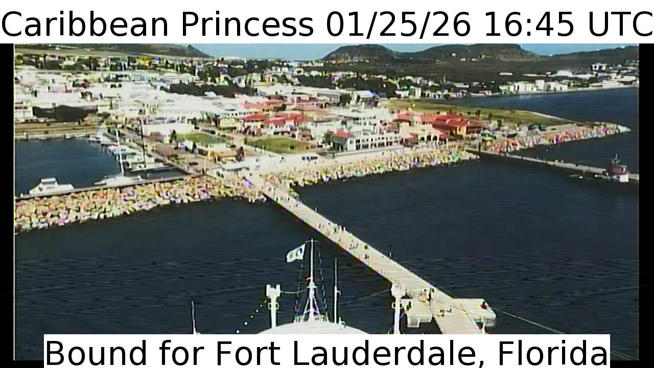 Caribbean Princess, Princess Cruises - 159 km von Hard Bargain: Live von der Brücke - Ein Blick von der Brücke des Kreuzfahrtschiffs Caribbean Princess.