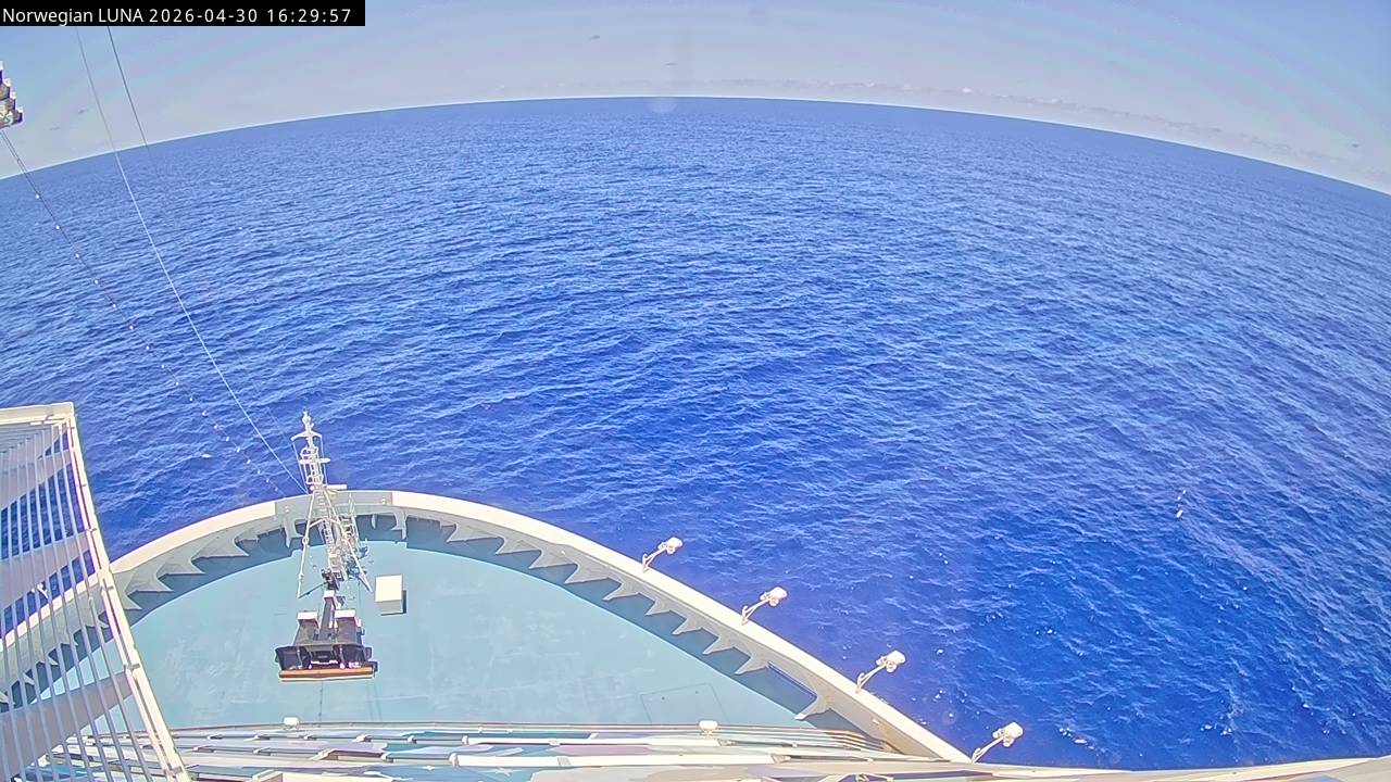 Norwegian Luna, Norwegian Cruise Line - 167.1 km von Pirates Well: Live auf See - Werfen Sie einen Blick von der Brücke des Kreuzfahrtschiffes Norwegian Luna auf die See.