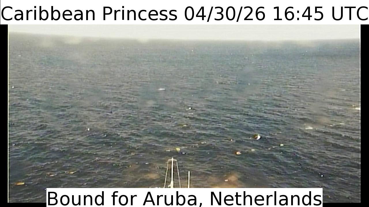 Caribbean Princess, Princess Cruises - 263.1 km von Pirates Well: Live von der Brücke - Ein Blick von der Brücke des Kreuzfahrtschiffs Caribbean Princess.