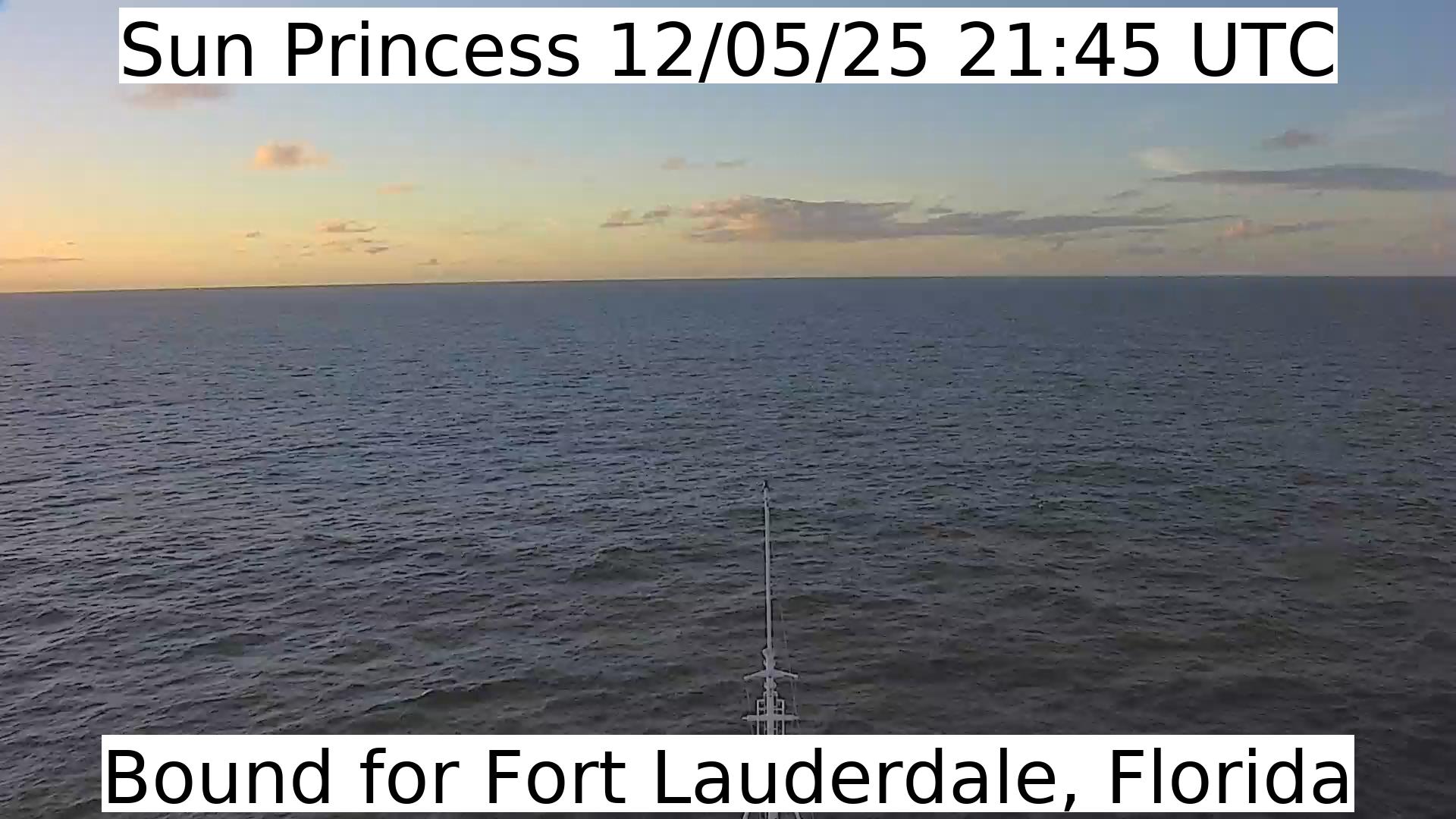 Norwegian Aqua, Norwegian Cruise Line - 201.4 km von Kew: Blick über den Bug - Werfen Sie einen Blick von der Brücke des Kreuzfahrtschiffes Norwegian Aqua auf die See.