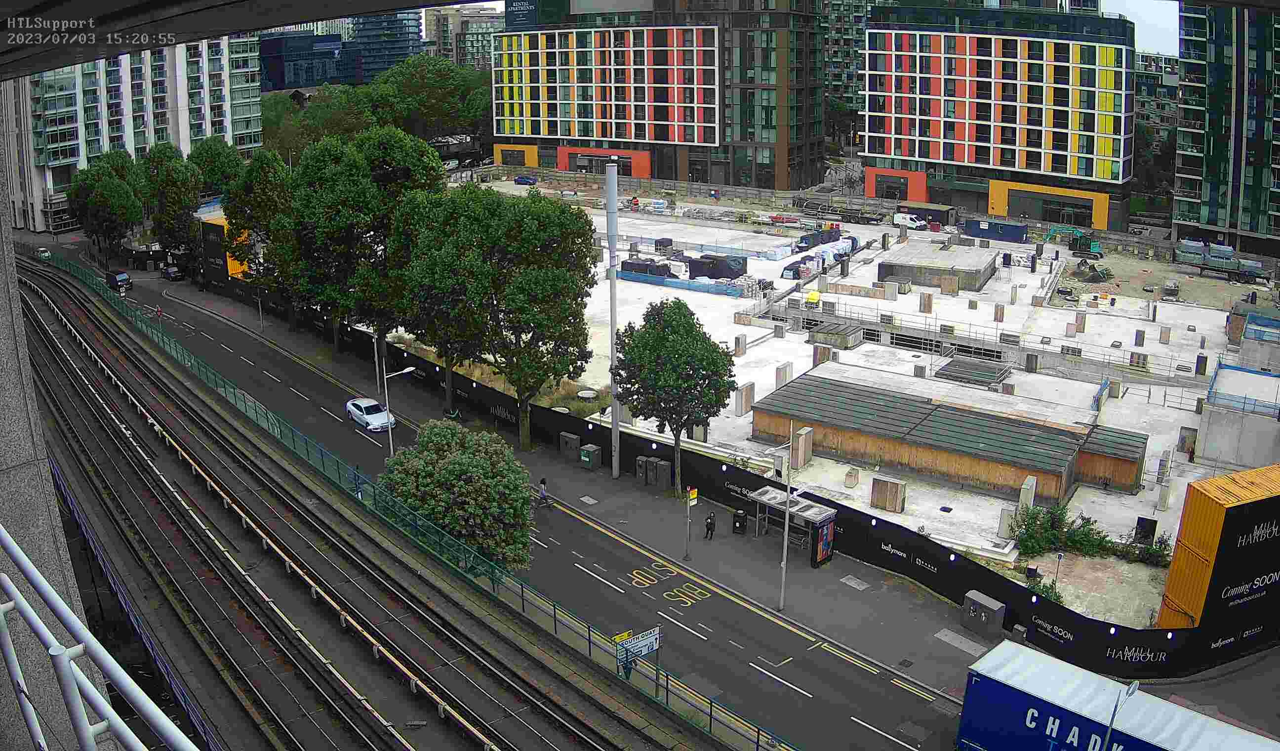 London, Großbritannien - 120.7 km von Alderton: Telecity Docklands - Blick von den Büros der London IT Support Company HTL Group in Richtung Südosten auf das Telecity Datacentre bei der Harbour Exchange - eine der 10 Stellen der London Internet Exchange.