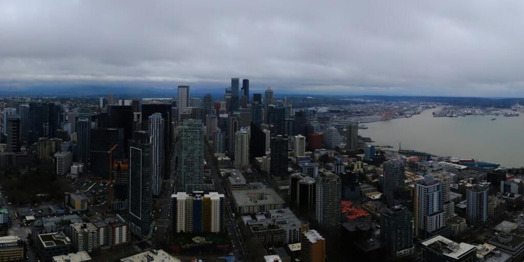- Blick auf die Space Needle, dem Wahrzeichen von Seattle.